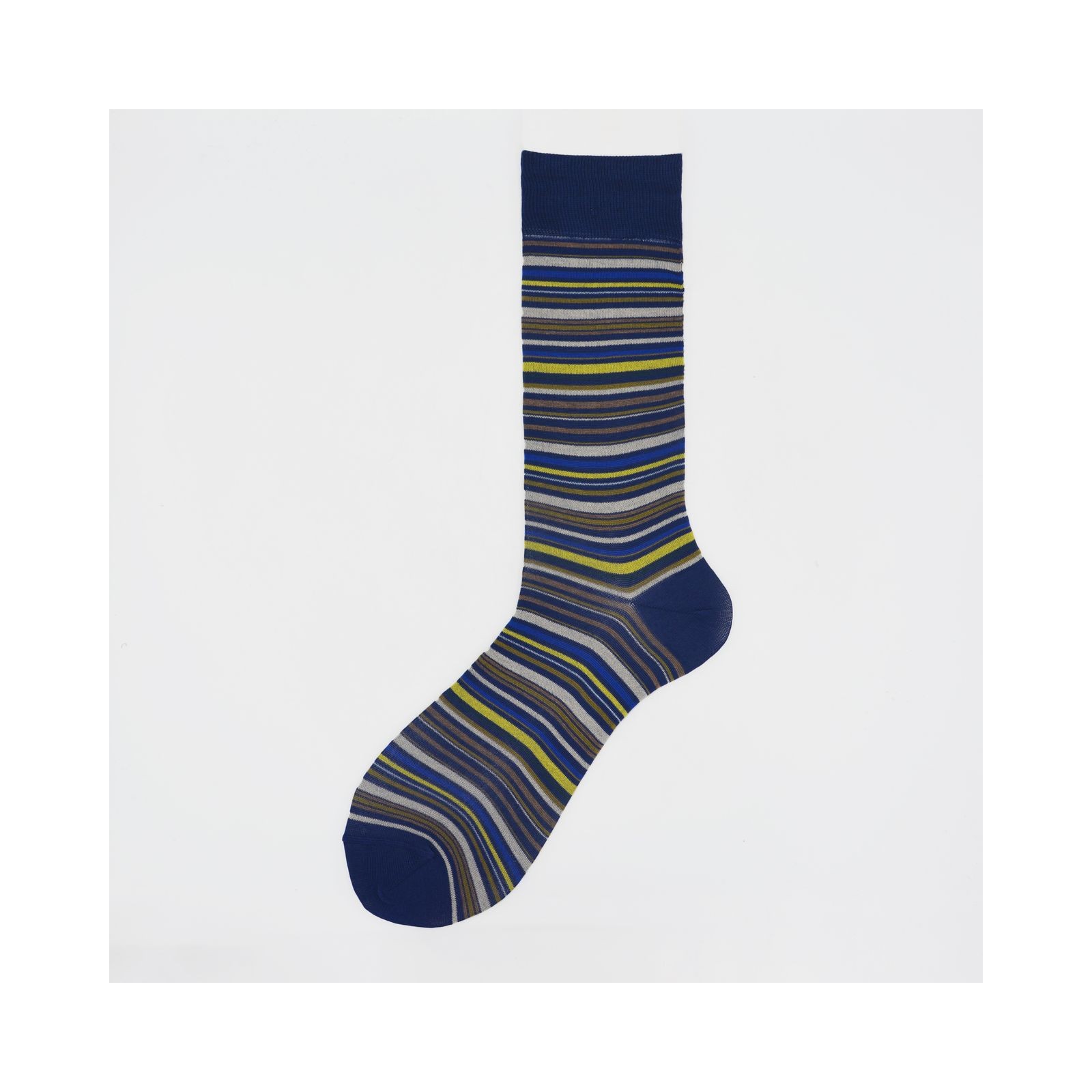 Genjo è una calza corta da uomo in cotone filoscozia a righe orizzontali colorate. Made in Italy e rifinito a mano.