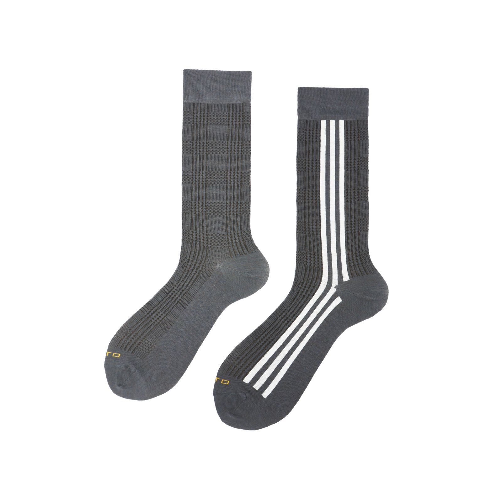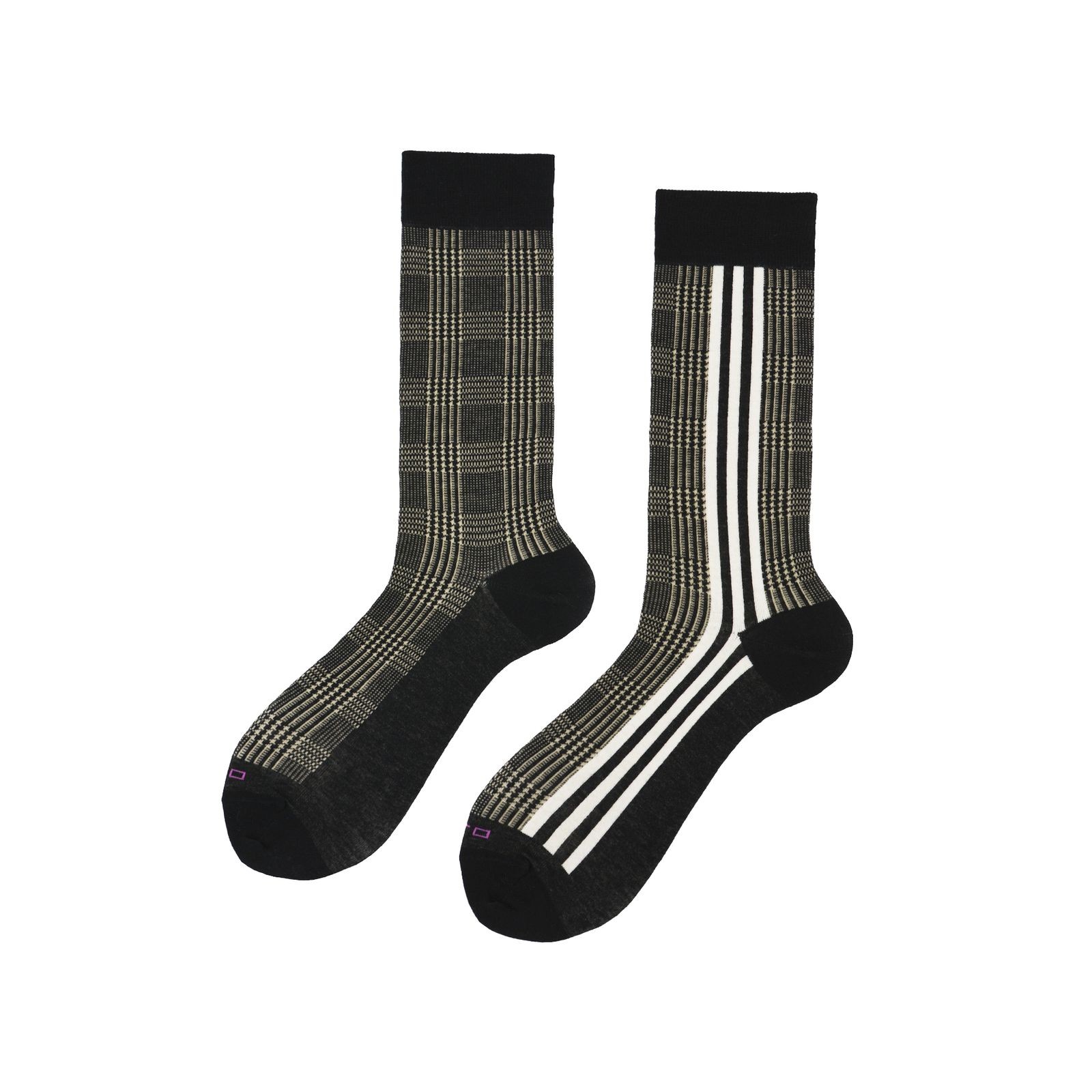 Calza corta rasata vanisé a fantasia Will, con motivo Principe di Galles, è ulteriormente arricchita da strisce bianche verticali e il logo Alto Milano in punta