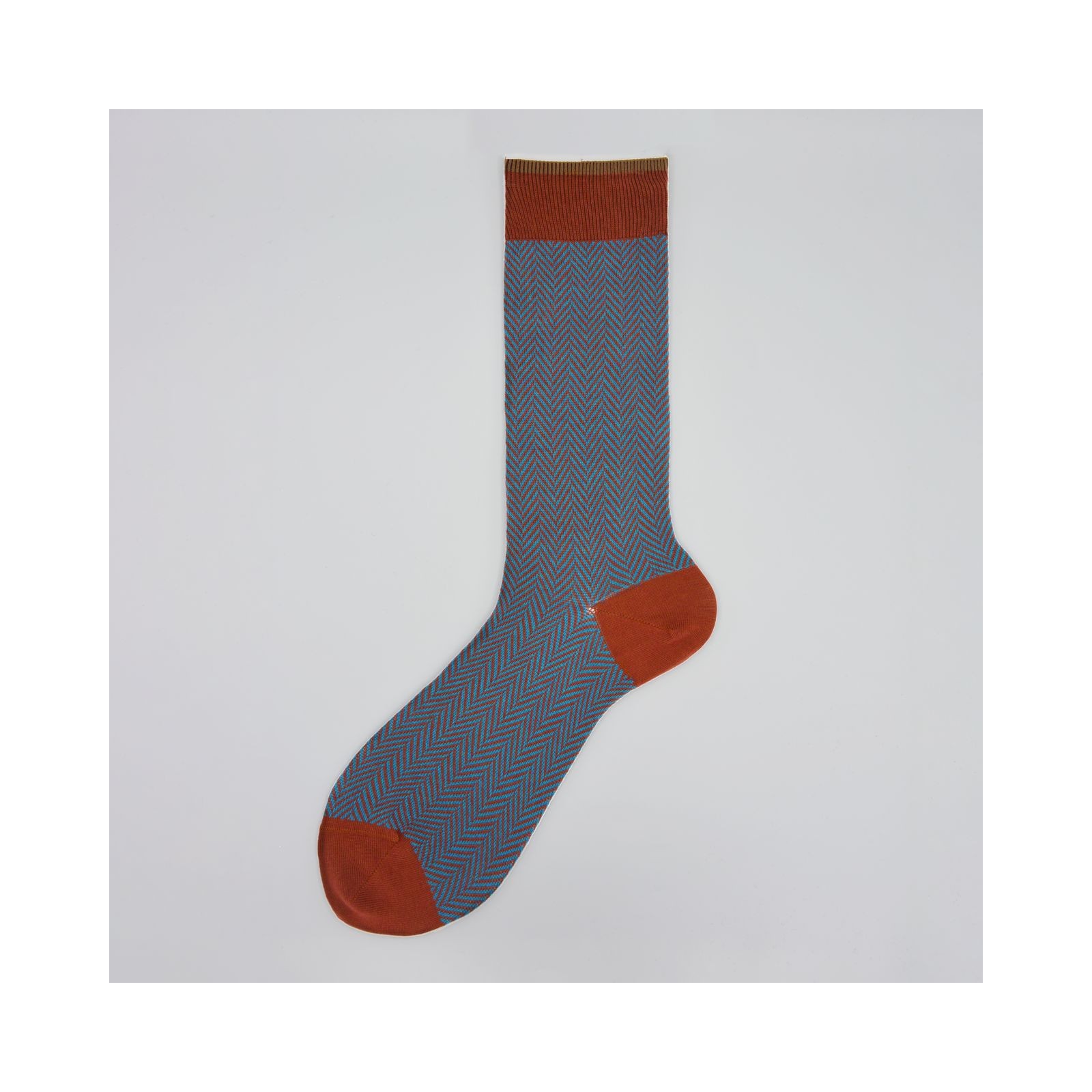 Bobby è una calza corta da uomo in cashcotton in fantasia a lisca con polso e tallone a contrasto