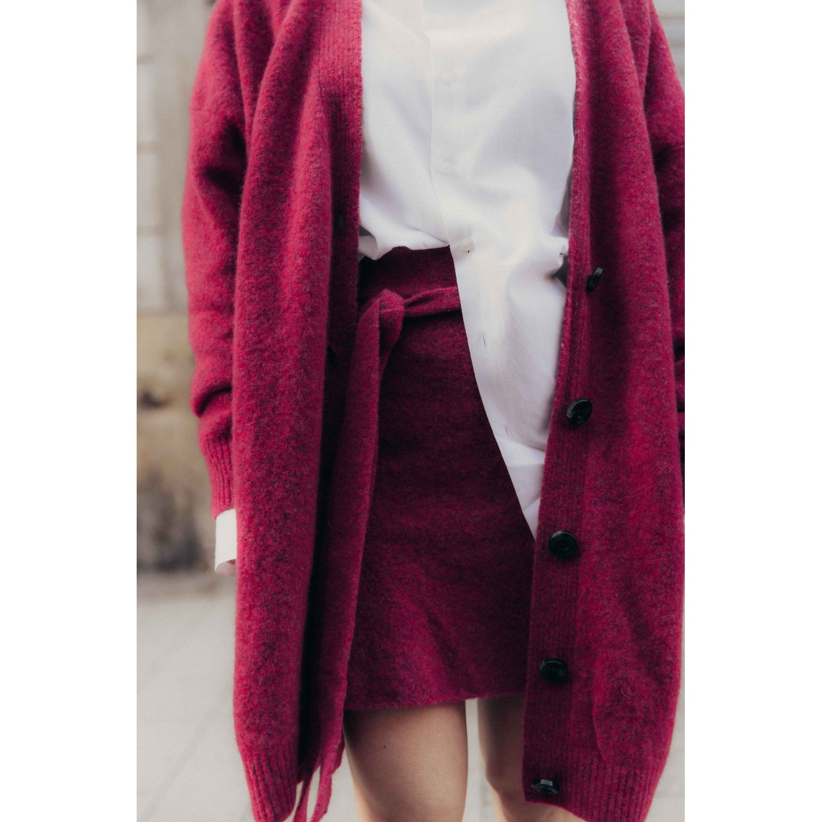Cutie è una gonna in lana con elastico in vita in tinta unita con una vestibilità regular - La modella in foto indossa una taglia S ed è alta 160 cm
