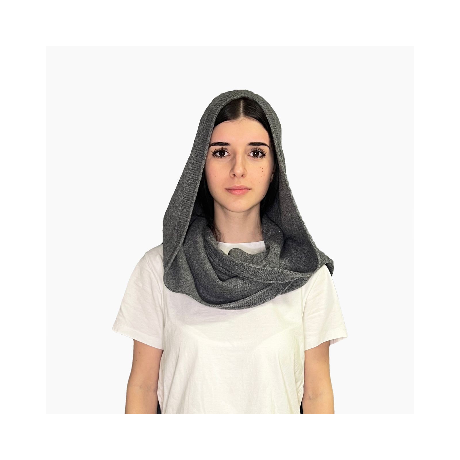 Megeve è una scairpa in cashwool con cappuccio in tinta unita. Made in Italy e rifinita a mano